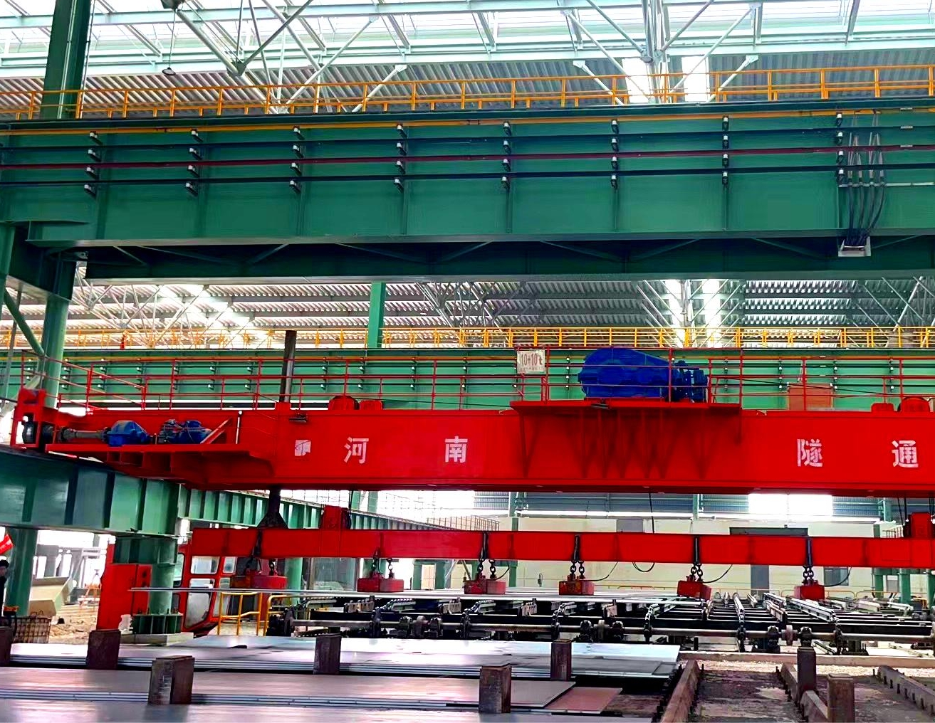 QE型通用橋式起重機依據GB/T14405-2011標準所設計、制造.該型號起重機是在QD型起重機基礎上設有兩臺起重小車,其可以單獨工作,也可以聯臺動作,適用于工礦企業(yè)車間及鐵路、港口碼頭等貨場吊運長件物品。